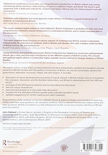 British Civilization: An Introduction John Oakland pdf francais - British Civilization: An Introduction a été écrit par John Oakland qui connu comme un auteur et ont écrit beaucoup de livres intéressants avec une grande narration. British Civilization: An Introduction a été l'un des livres de populer sur 2016. Il contient 390 pages et disponible sur format . Ce livre a été très surpris en raison de sa note rating et a obtenu environ avis des utilisateurs. Donc, après avoir terminé la lecture de ce livre, je recommande aux lecteurs de ne pas sous-estimer ce grand livre. Vous devez prendre British Civilization: An Introduction que votre liste de lecture ou vous serez regretter parce que vous ne l'avez pas lu encore dans votre vie.Rang parmi les ventes Amazon: #2358 dans LivresPublié le: 2015-11-27Langue d'origine: AnglaisDimensions: 9.50" h x .70" l x 6.80" L, .0 livres Reliure: Broché390 pagesPrésentation de l'éditeurThe eighth edition of this highly-praised textbook has been substantially updated and revised to provide students of British studies with the perfect introduction to Britain, its country and people, politics and government, education, economy, media, arts and religion. It includes: discussion of recent developments and areas of topical interest in British society such as immigration, the recession, devolution and the Scottish Referendum and Britain’s relationships with the US and the EU coverage of the 2015 general election and its implications for the future new full-colour illustrations exercises and questions to stimulate class discussion insights into the attitudes of British people today towards important issues updated suggestions for further reading and useful websites. Supported by a fully updated companion website (found at www.routledge.com/cw/oakland) featuring further exercises, quiz questions, an interactive timeline, links to relevant articles and videos online and tutor guidance, British Civilization is a vital introduction to the crucial and complex identities of Britain past and present. Biographie de l'auteurJohn Oakland is former Senior Lecturer in English at the Norwegian University of Science and Technology and the author (with David Mauk) of American Civilization (2013, now in its sixth edition), Irish Civilization (2012, with Arthur Aughey), British Civilization: A Student’s Dictionary (2003, in its second edition), and Contemporary Britain (2001).